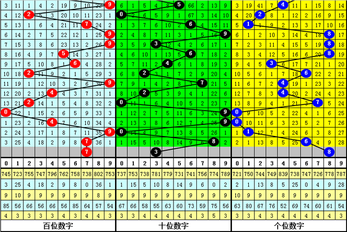 百位分析:百位最近9期出号:6-2-9-4-2-0-4-9-7,奖号奇偶比为3:6,012路比为4:3:2,大小比为4:5,本期百位参考号码267。